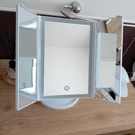 Zaboravite na tamne kutove i nesigurno nanošenje šminke. Naše ogledalo pruža idealno svjetlo bez sjena, tako da svaki potez kistom izgleda precizno i prirodno. Jednostavno za korištenje, elegantnog izgleda i vaš vjerni saveznik u svakodnevnoj njezi i uljepšavanju.
